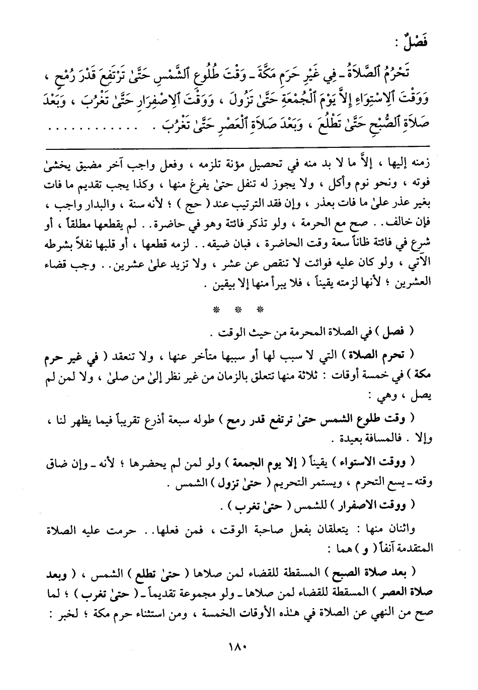 (فصل) في الصلاة المحرمة من حيث الوقت.