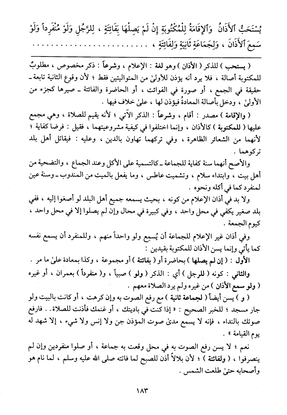 (يستحب) للذكر (الأذان) وهو لغة: الإعلام، وشرعاً: ذكر مخصوص، مطلوبٌ للمكتوبة أصالة، فلا يرد أنه يؤذن للأولى من المتواليتين فقط؛ لأن وقوع الثانية تابعة -حقيقة في الجمع، أو صورة في الفوائت، أو الحاضرة والفائتة- صيرها كجزء من الأولى، ودخل بأصالة المعادةُ فيؤذن لها، على خلاف فيها.