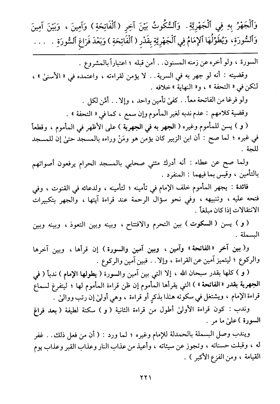 فائدة: يجهر المأموم خلف الإمام في تأمينه؛ لتأمينه، ولدعائه في القنوت، وفي فتحه عليه، وتنبيهه، وفي نحو سؤال الرحمة عند قراءة آيتها، والجهر بتكبيرات الانتقالات إذا كان مبلغاً.