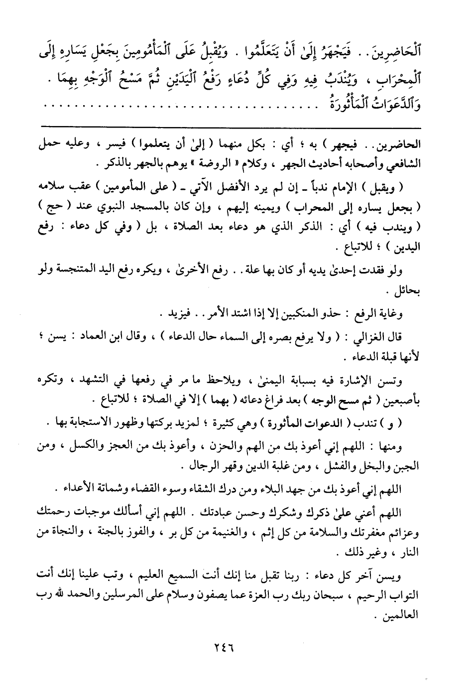 (و) تندب (الدعوات المأثورة) وهي كثيرة؛ لمزيد بركتها وظهور الاستجابة بها.