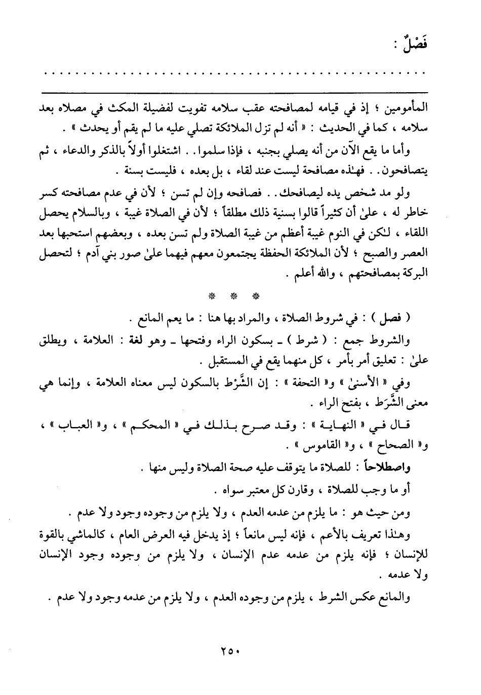 (فصل): في شروط الصلاة، والمراد بها هنا: ما يعم المانع.