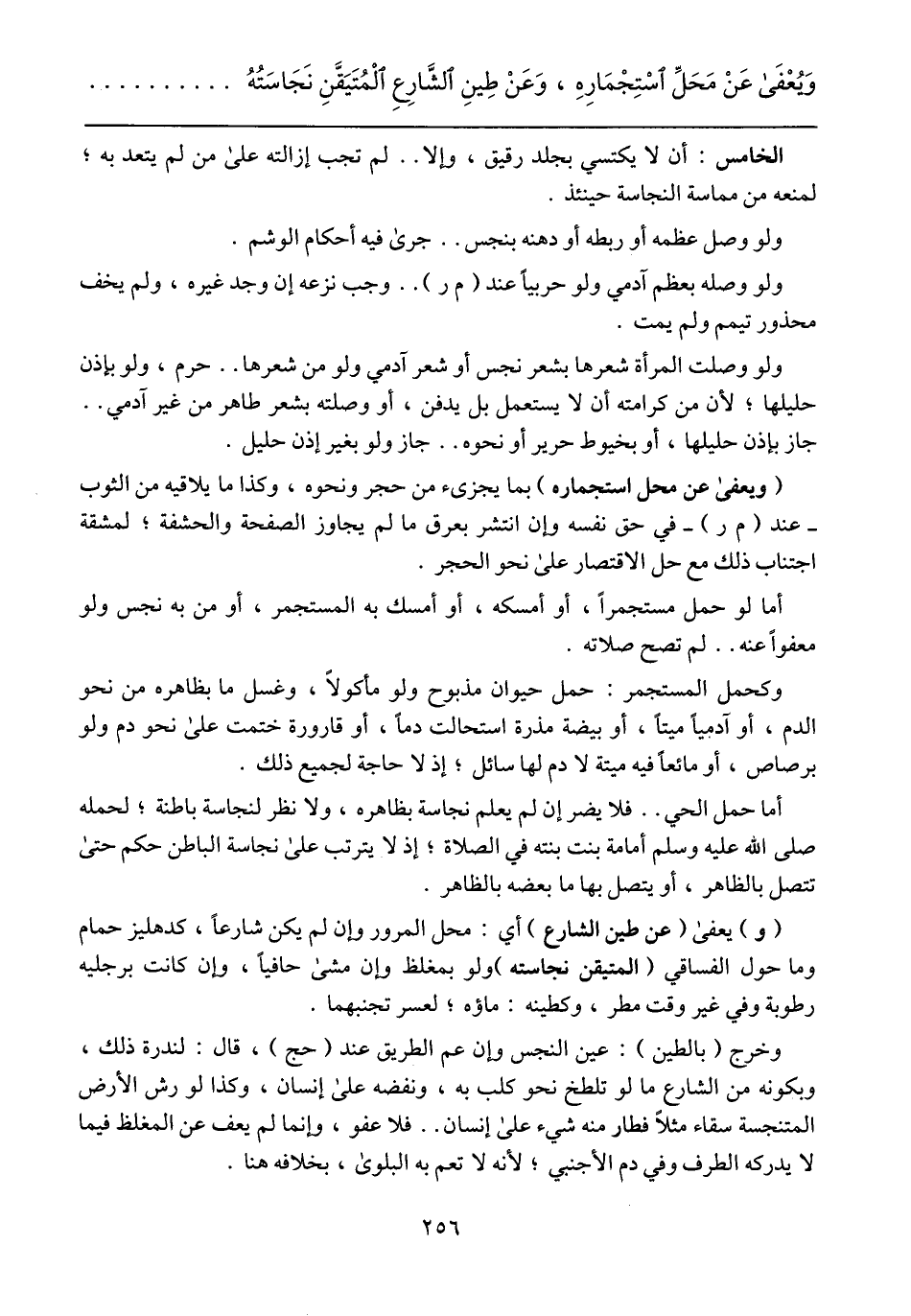 (و) يعفى (عن طين الشارع) أي: محل المرور إن لم يكن شارعاً، كدهليز حمام وما حول الفساقي (المتيقن نجاسته) ولو بمغلظ وإن مشى حافياً، وإن كانت برجليه رطوبة وفي غير وقت مطر، وكطينه: ماؤه؛ لعسر تجنبها.