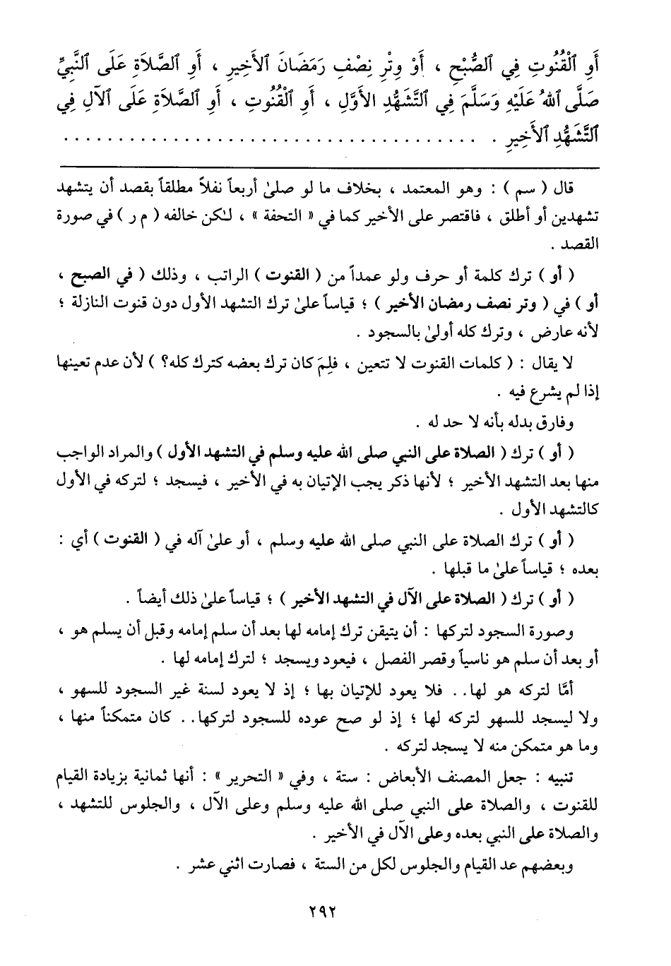 تنبيه: جعل المصنف الأبعاض: ستة، وفي "التحرير": أنها ثمانية بزيادة القيام للقنوت، والصلاة على النبي صلى الله عليه وسلم وعلى الآل، والجلوس للتشهد، والصلاة على النبي بعده وعلى الآل في الأخير.