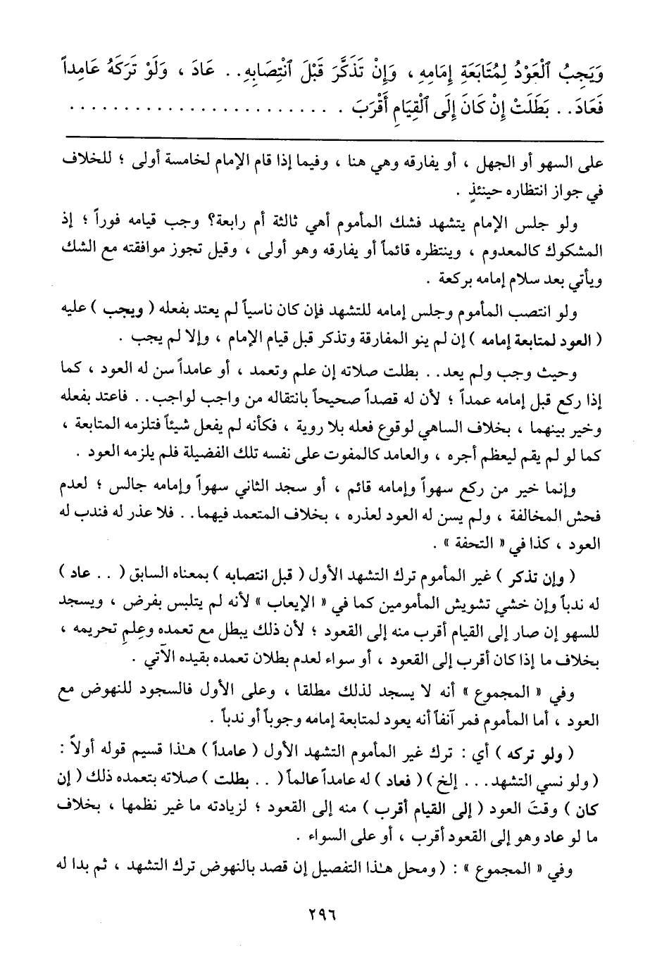 وفي: "المجموع" أنه لا يسجد لذلك مطلقاً، وعلى الأول فالسجود للنهوض مع العود، أما المأموم فمر آنفاً أنه يعود لمتابعة إمامه وجوباً أو ندباً.