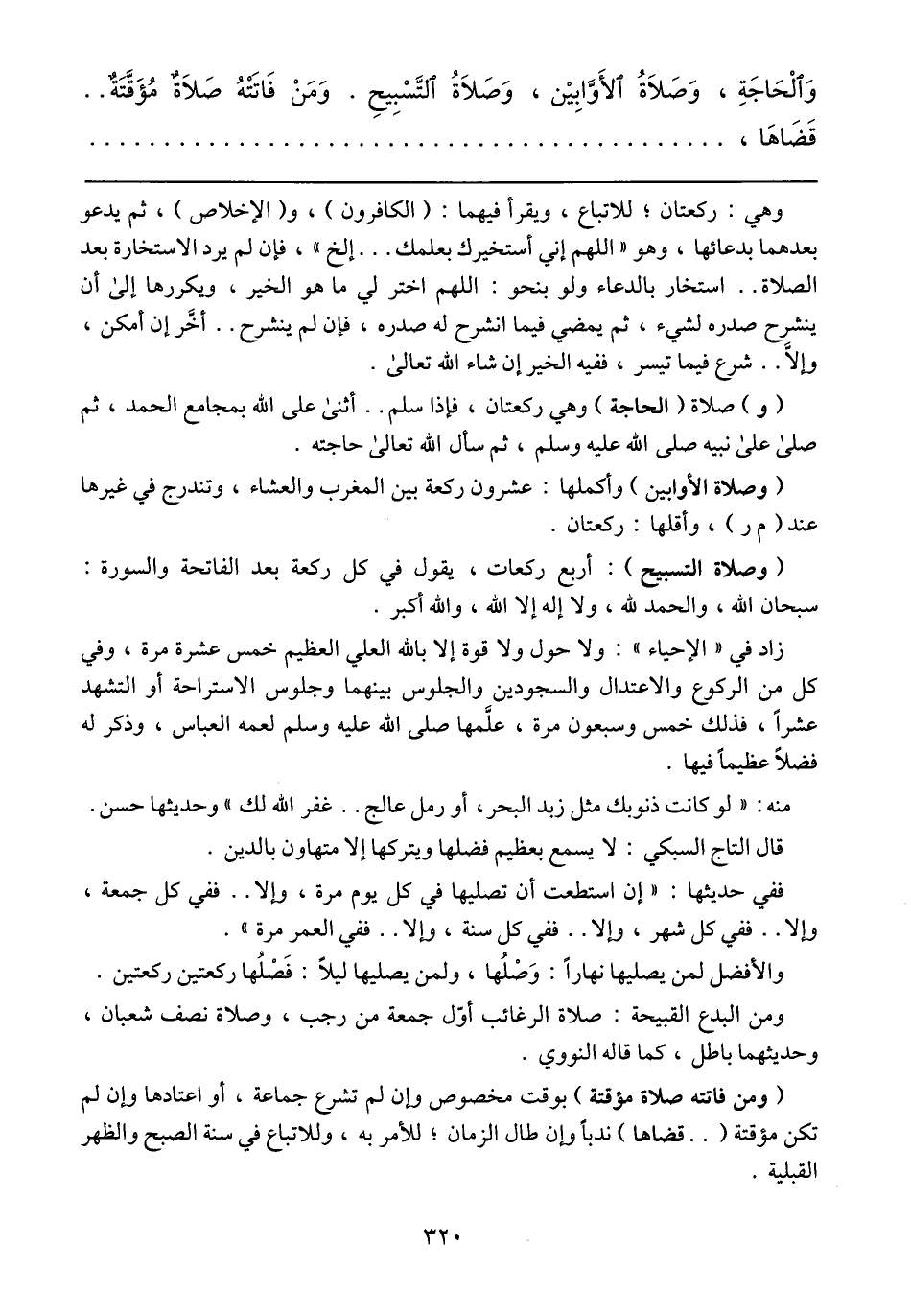 (وصلاة التسبيح): أربع ركعات، يقول في كل ركعة بعد الفاتحة والسورة: سبحان الله، والحمد لله، ولا إله إلا الله، والله أكبر.
