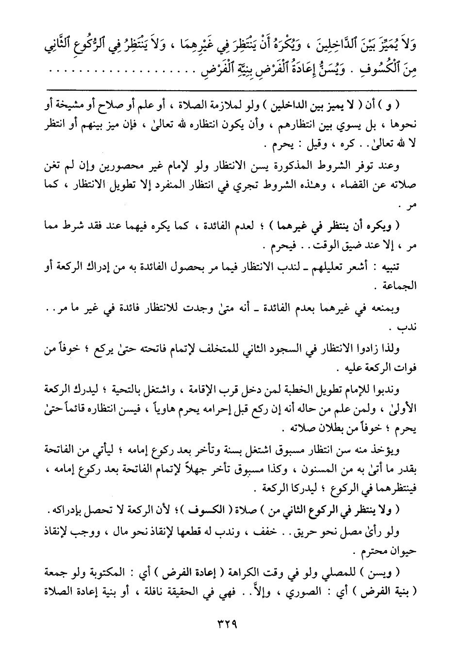 ويؤخذ منه سن انتظار مسبوق اشتغل بسنة وتأخر بعد ركوع إمامه؛ ليأتي من الفاتحة بقدر ما أتى به من المسنون، وكذا مسبوق تأخر جهلاً لإتمام الفاتحة بعد ركوع إمامه، فينتظرهما في الركوع؛ ليدركا الركعة.