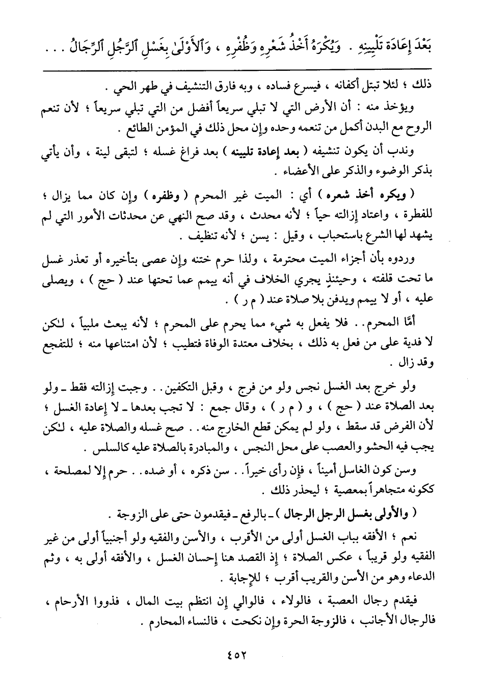 (والأولى بغسل الرجل الرجال) -بالرفع- فيقدمون حتى على الزوجة.