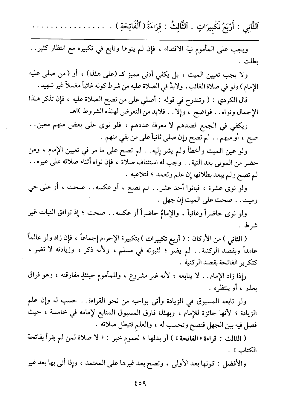 ولا يجب تعيين الميت، بل يكفى أدنى مميزكـ (على هذا)، أو (من صلى عليه الإمام) ولو في صلاة الغائب، ولابدَّ في الصلاة عليه من شرط كونه غائباً مغسلاً غير شهيد.