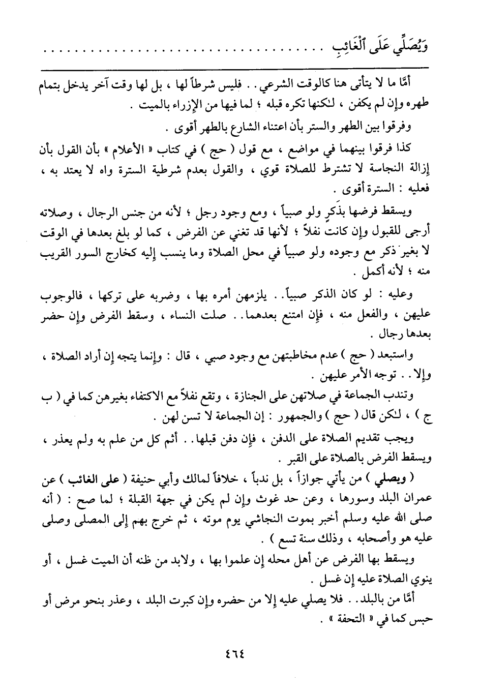 أمَّا ما لا يتأتى هنا كالوقت الشرعي .. فليس شرطاً لها، بل لها وقت آخر يدخل بتمام طهره وإن لم يكفن، لكنها تكره قبله؛ لما فيها من الإزراء بالميت.
