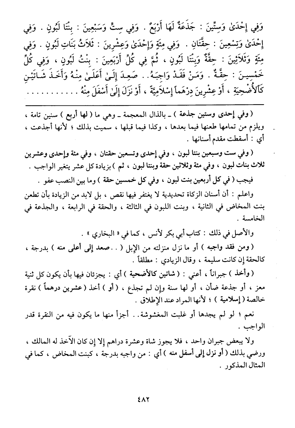(وفي ست وسبعين بنتا لبون، وفي إحدى وتسعين حقتان، وفي مئة وإحدى وعشرين ثلاث بنات لبون، وفي مئة وثلاثين حقة وبنتا لبون، ثم) بزيادة كل عشر يتغير الواجب، فيجب (في كل أربعين بنت لبون، وفي كل خمسين حقة) وما بين النصب عفو.