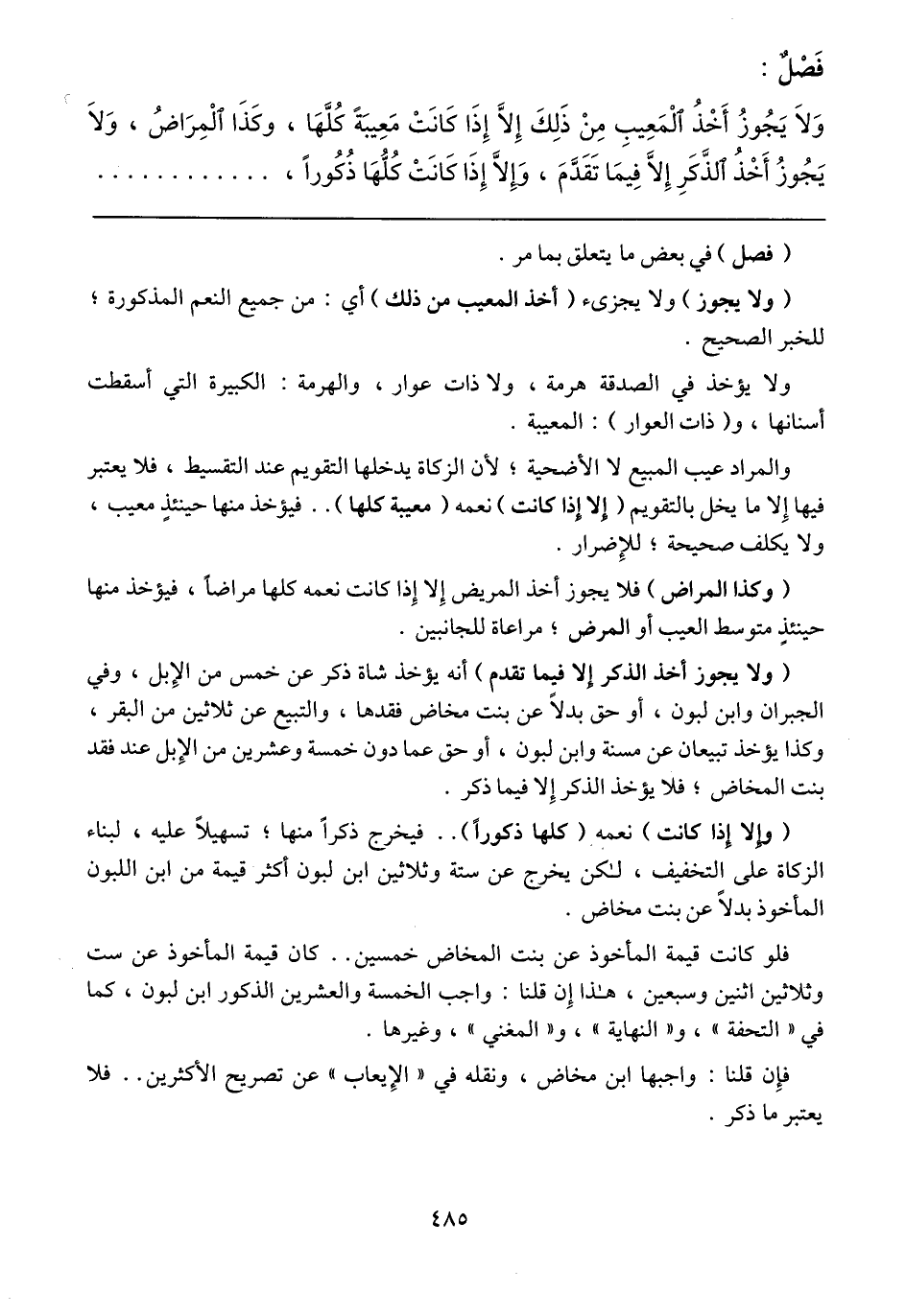 فلو كانت قيمة المأخوذ عن بنت المخاض خمسين .. كان قيمة المأخوذ عن ست وثلاثين اثنين وسبعين هذا إن قلنا: واجب الخمسة والعشرين الذكور ابن لبون، كما في "التحفة"، و"النهاية"، و"المغني"، وغيرها.