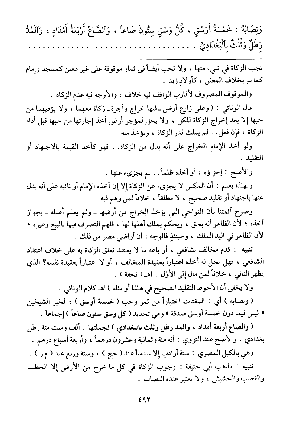 تنبيه: مذهب أبي حنيفة: وجوب الزكاة في كل ما خرج من الأرض إلا الحطب والقصب والحشيش، ولا يعتبر عنده النصاب.