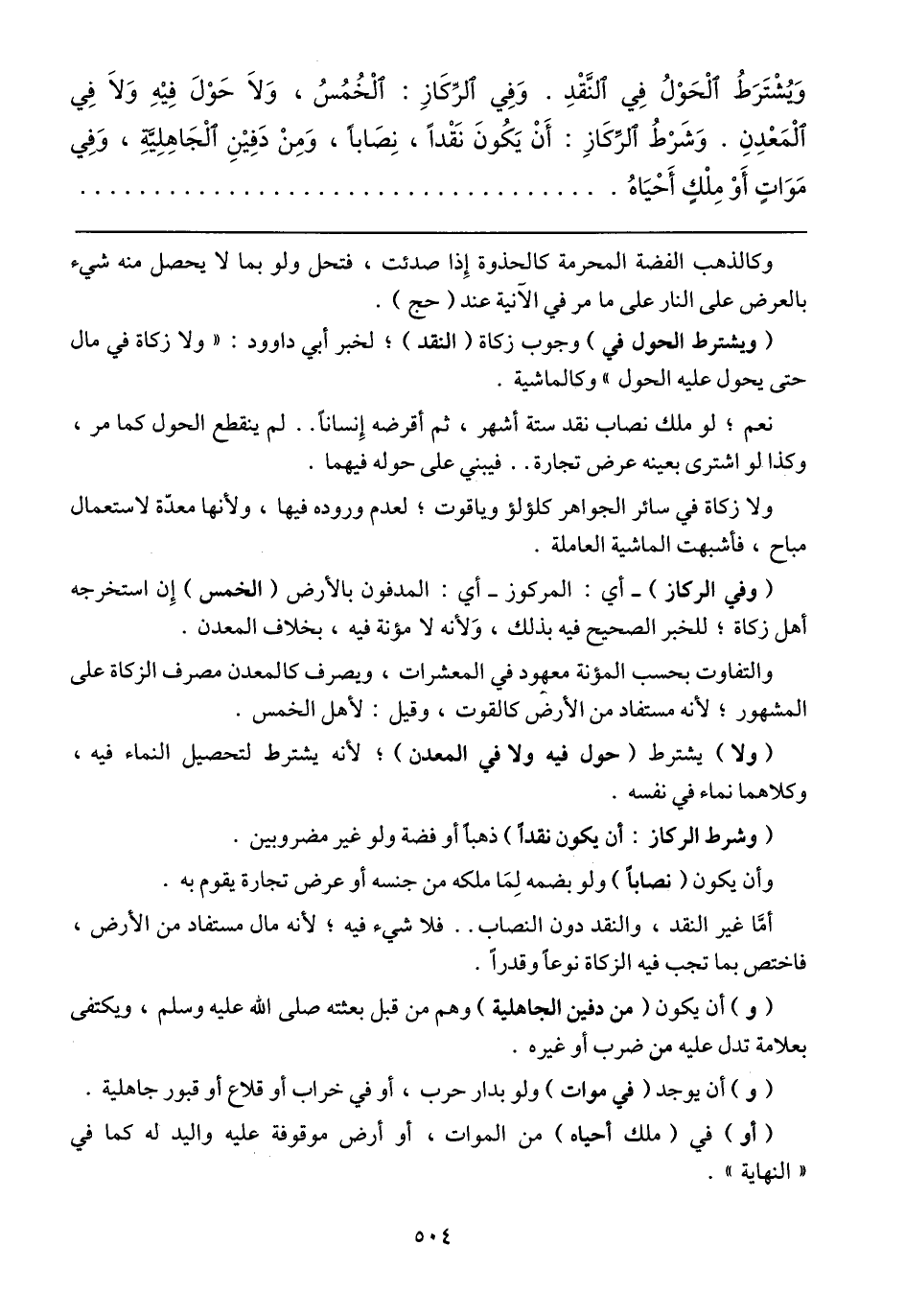 (ولا) يشترط (حول فيه ولا في المعدن)؛ لأنه يشترط لتحصيل النماء فيه، وكلاهما نماء في نفسه.