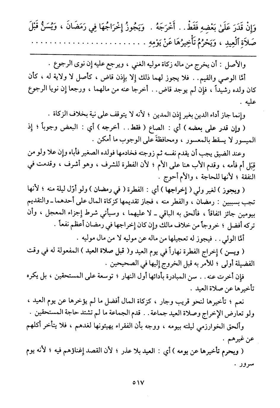 أمّا الولي .. فيجوز له تعجيلها من ماله عن موليه لا من مال موليه.