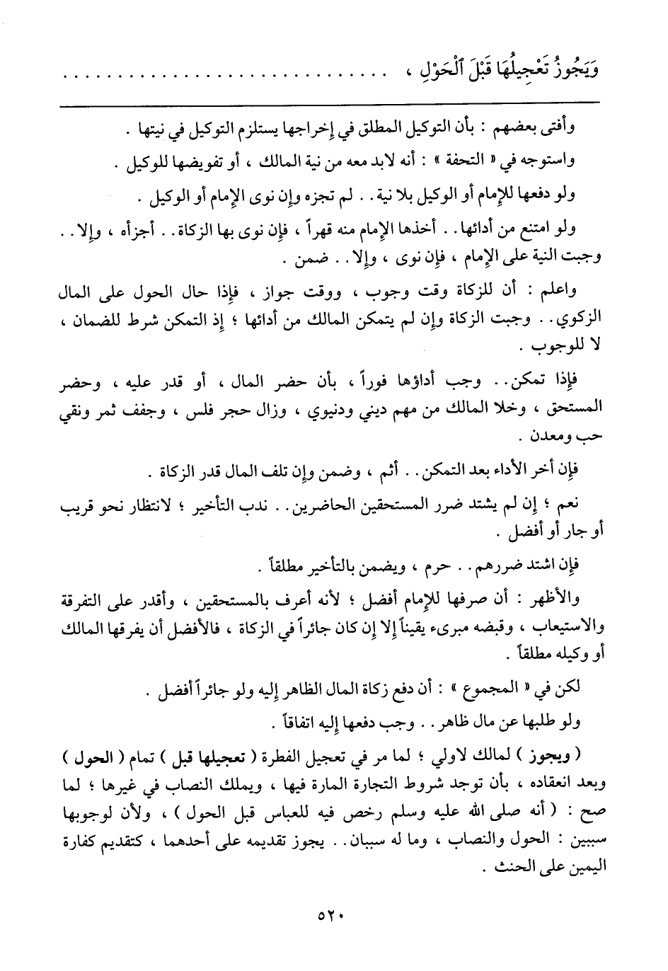 فإذا تمكن .. وجب أداؤها فوراً، بأن حضر المال، أو قدر عليه، وحضر المستحق، وخلا المالك من مهم ديني ودنيوي، وزال حجر فلس، وجفف ثمر ونقي حب ومعدن.