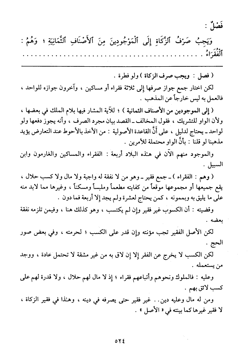 (وهم: الفقراء) -جمع فقير- وهو من لا نفقة له واجبة ولا مال ولا كسب حلال، يقع جميعها أو مجموعها موقعاً من كفايته مطعماً وملبساً ومسكناً، وغيرها مما لابد منه على ما يليق به وبممونه، كمن يحتاج لعشرة ولم يجد إلا أربعة فما دون.