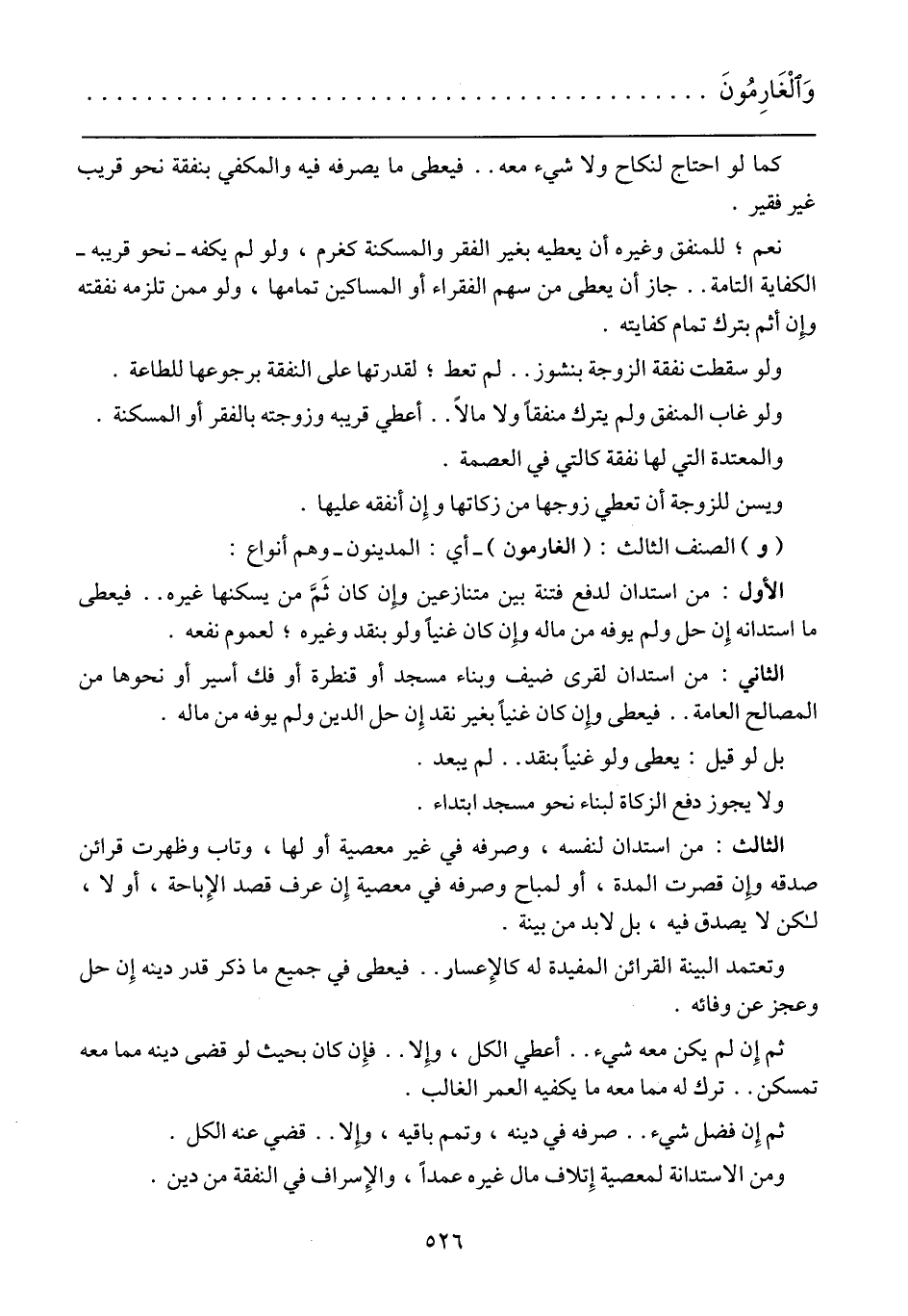 (و) الصنف الثالث: (الغارمون) -أي: المدينون- وهم أنواع: