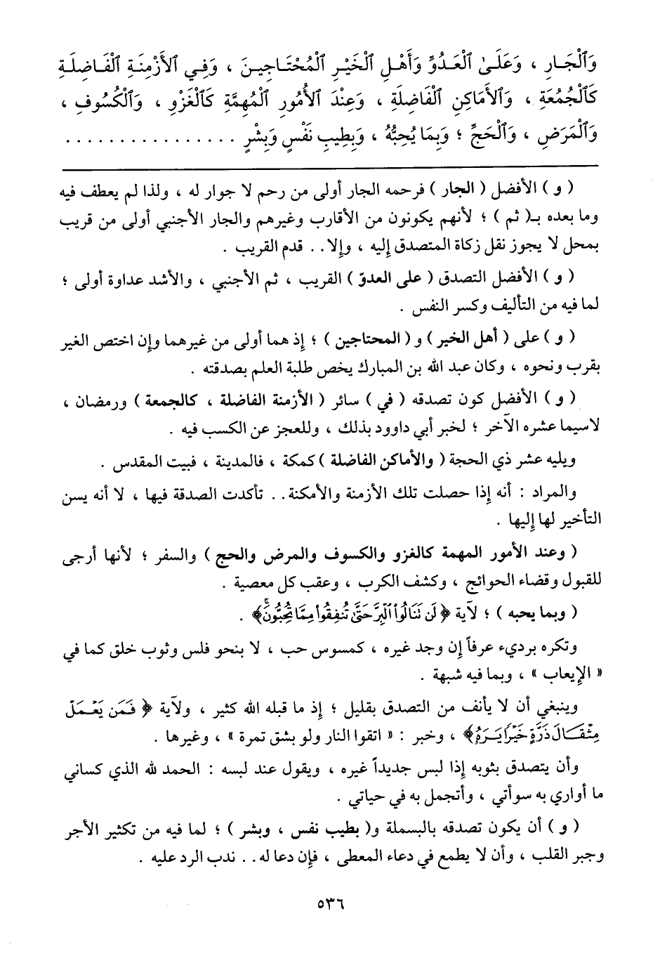 (و) على (أهل الخير) و (المحتاجين)؛ إذ هما أولى من غيرهما وإن اختص الغير بقرب ونحوه، وكان عبد الله بن المبارك يخص طلبة العلم بصدقته.