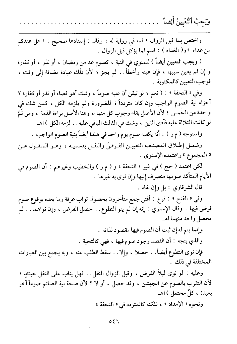 وشمل إطلاق المصنف التعيين الفرضَ والنفلَ بقسميه، وهو المنقول عن "المجموع" واعتمده الإسنوي.
