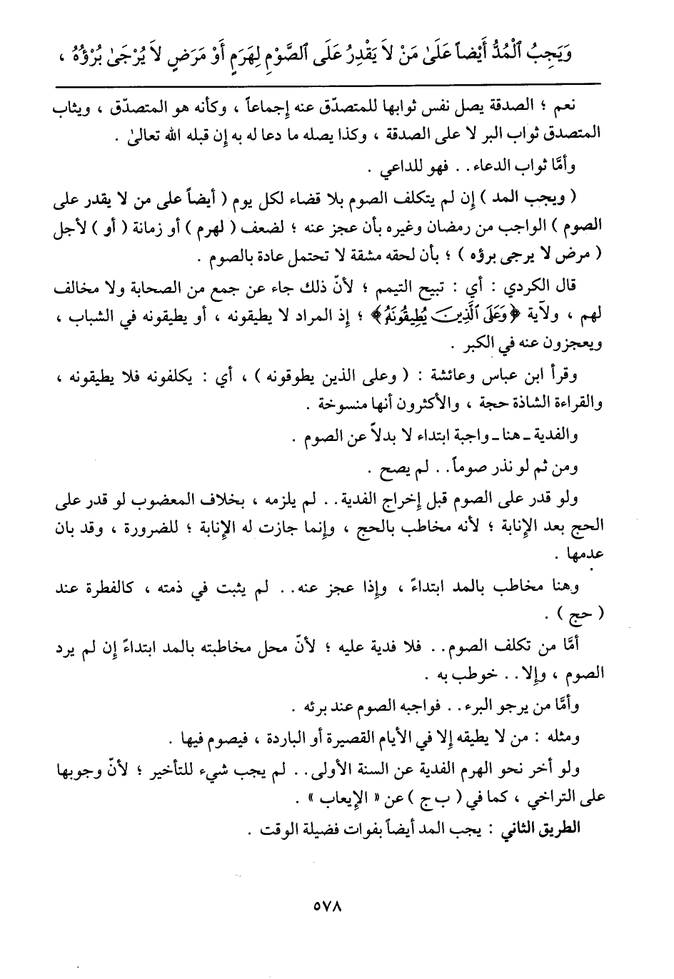 قال الكردي: أي: تبيح التيمم؛ لأن ذلك جاء عن جمع من الصحابة ولا مخالف لهم، ولآية (وَعَلَى الَّذِينَ يُطِيقُونَهُ) [البقرة:184]؛ إذ المراد لا يطيقونه، أو يطيقونه في الشباب، ويعجزون عنه في الكبر.