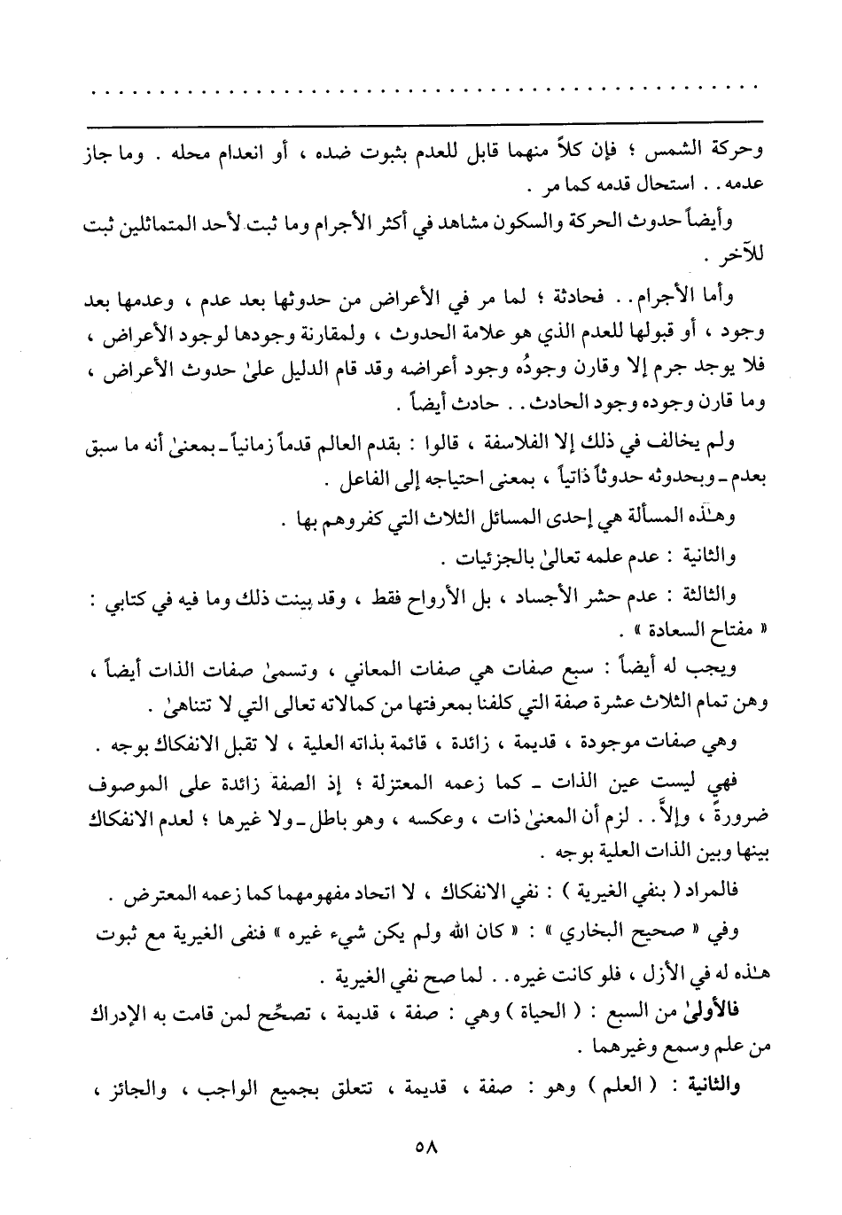 وهي صفات موجودة، قديمة، زائدة، قائمة بذاته العلية، لا تقبل الانفكاك بوجه.