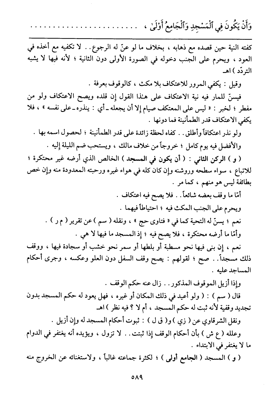 ونقل الشرقاوي عن (زي) و (ق ل): ثبوت حكام المسجد له وإن أزيل.