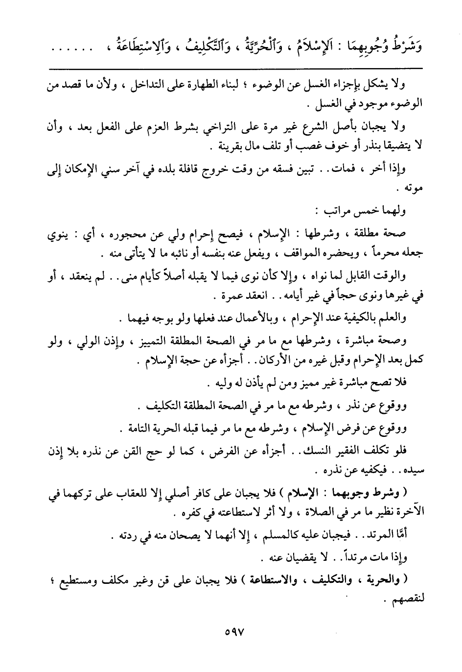 ووقوع عن فرض الإسلام، وشرطه مع ما مر فيما قبله الحرية التامة.