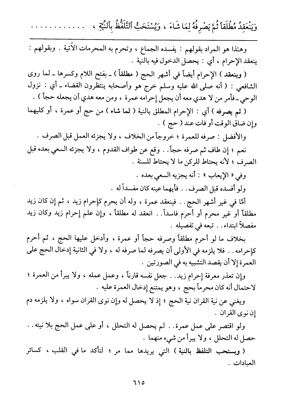 وهذا هو المراد بقولهم: يفسده الجماع، وتحرم به المحرمات الآتية. وبقولهم: ينعقد الإحرام، أي: يحصل الدخول فيه بالنية.