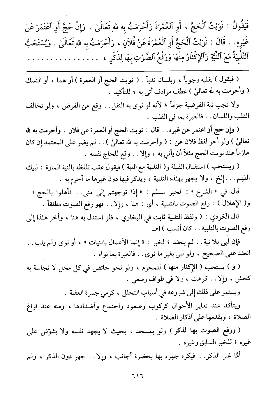 قال الكردي: (ولفظ التلبية ثابت في البخاري، فلو استدل به هنا، وأخر هذا إلى رفع الصوت بالتلبية .. كان أنسب) اهـ