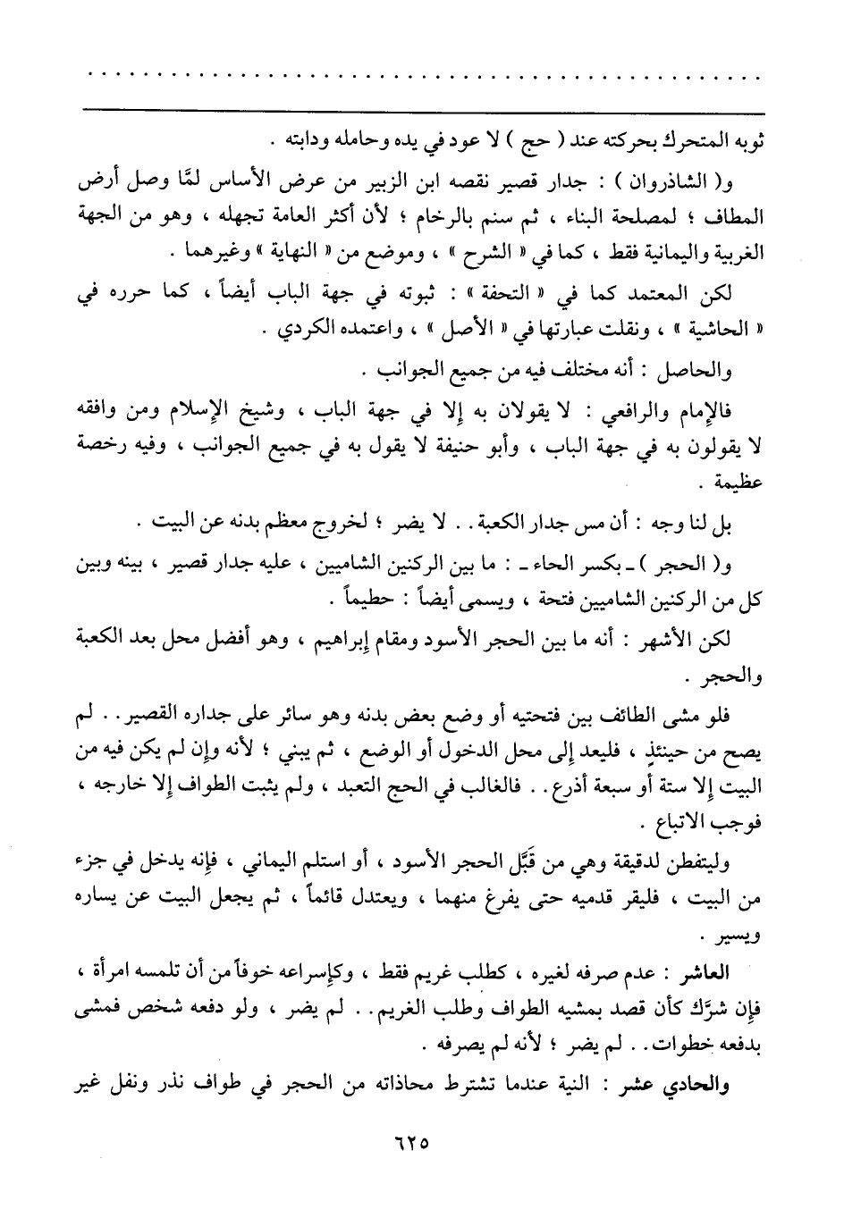 ثوبه المتحرك بحركته عند (حج) لا عود في يده وحامله ودابته.