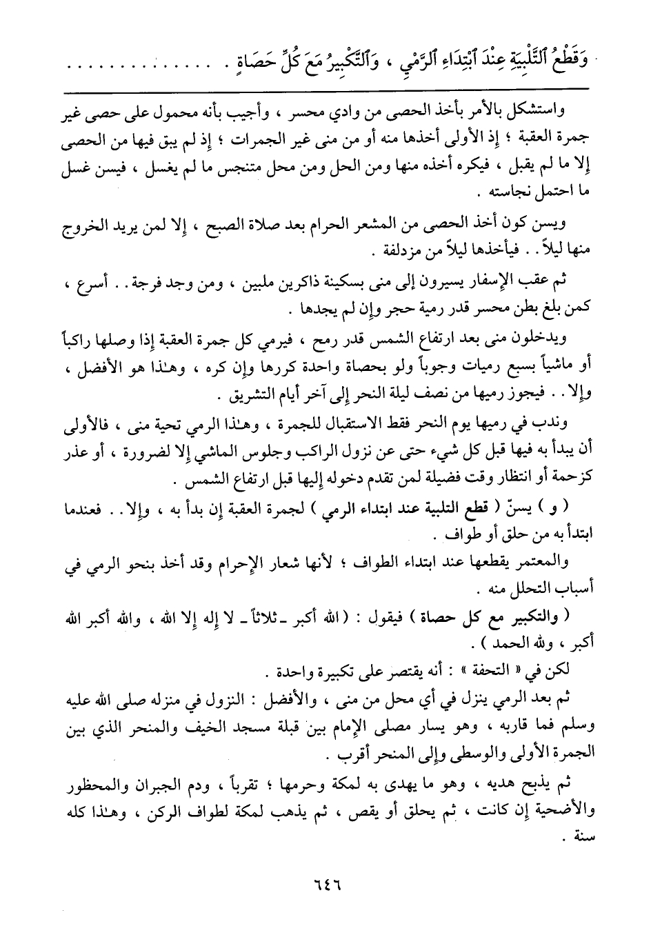 ثم عقب الإسفار يسيرون إلى منى بسكينة ذاكرين ملبين، ومن وجد فرجة .. أسرع، كمن بلغ بطن محسر قدر رمية حجر وإن لم يجدها.