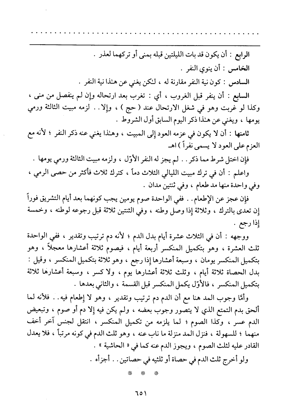 ووجهه: أن في الثلاث عشرة أيام بدل الدم؛ لأنه دم ترتيب وتقدير، ففي الواحدة ثلث العشرة، وهو بتكميل المنكسر أربعة أيام، فيصوم ثلاثة أعشارها معجلاً، وهو بتكميل المنكسر يومان، وسبعة أعشارها إذا رجع، وهو ثلاثة بتكميل المنكسر، وقيل: بدل الحصاة ثلاثة أيام، وثلث ثلاثة أعشارها يوم، ولا كسر، وسبعة أعشارها ثلاثة بتكميل المنكسر، فالأوّل يكمل المنكسر قبل القسمة، والثاني بعدها.