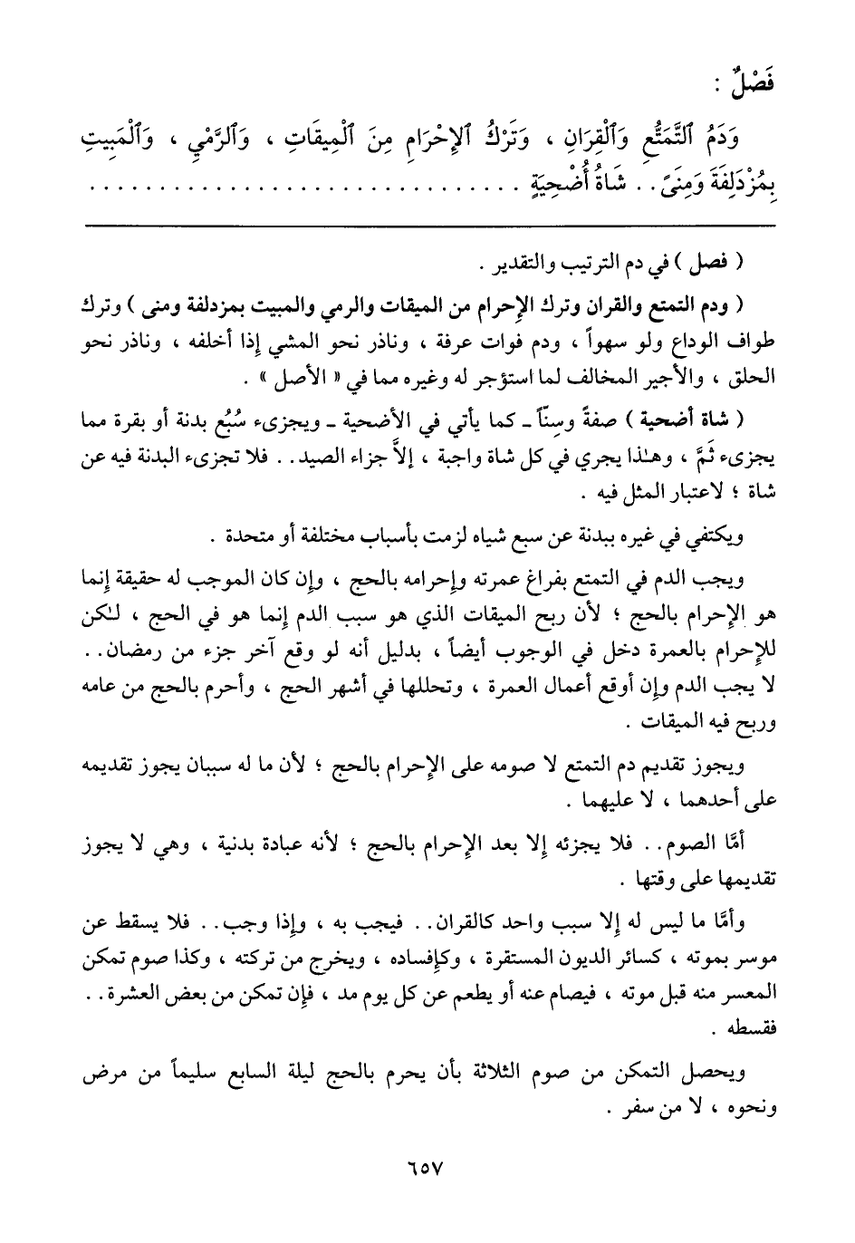 (فصل) في دم الترتيب والتقدير.
