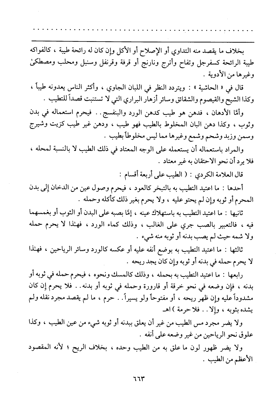 قال العلامة الكردي: (الطيب على أربعة أقسام: