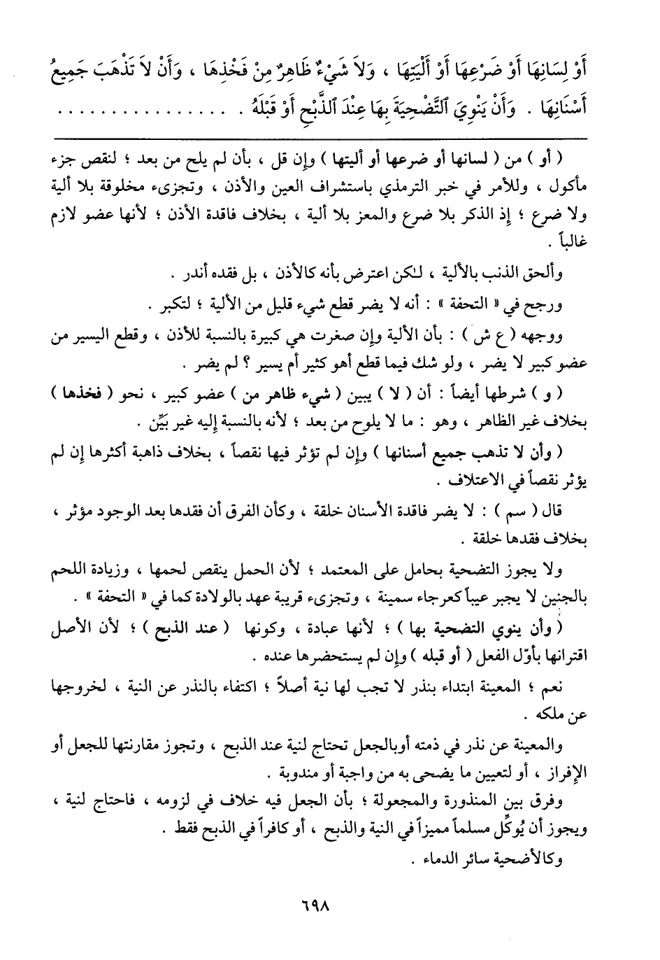 ورجح في "التحفة": أنه لا يضر قطع شيء قليل من الألية؛ لتكبر.