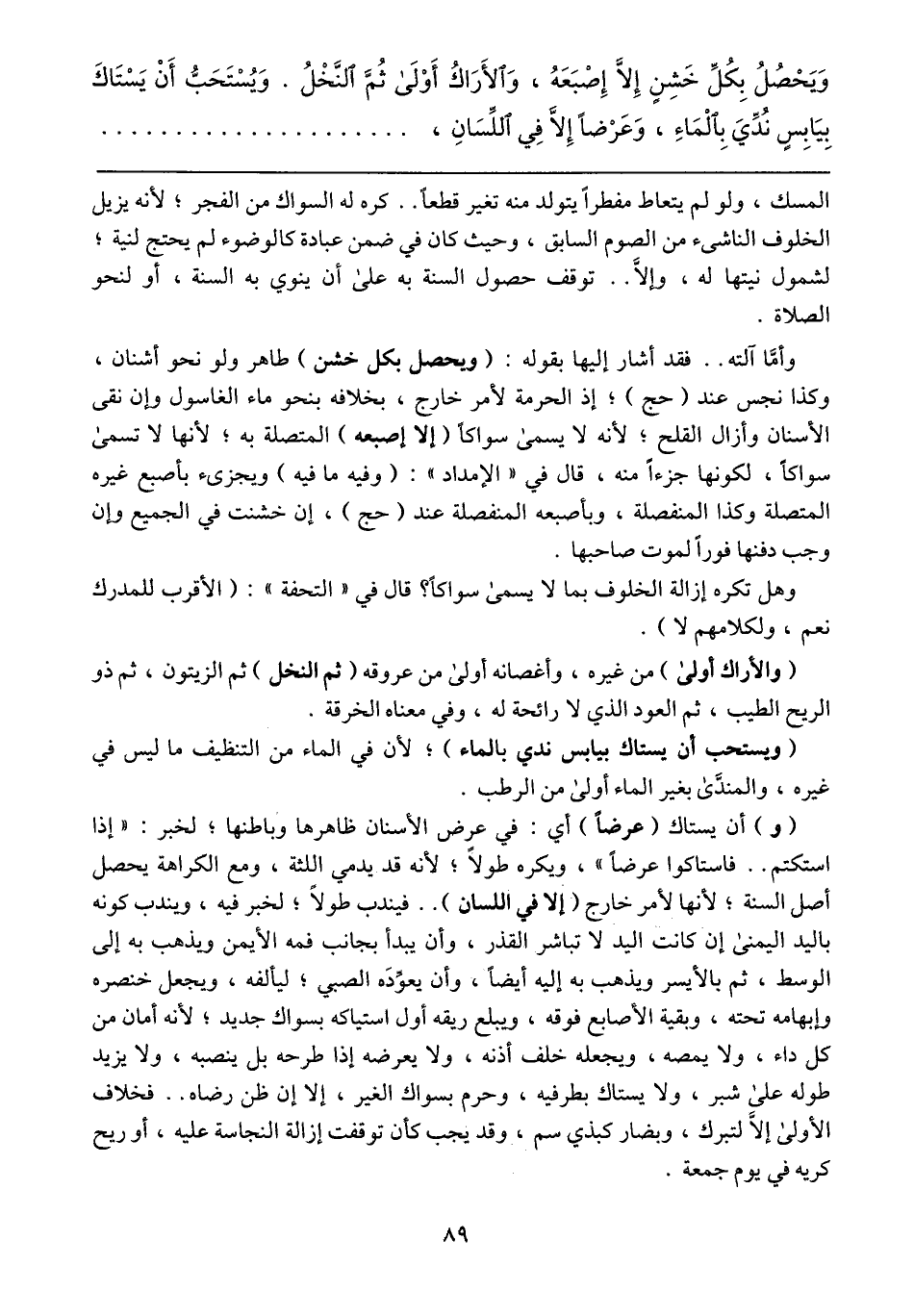 وهل تكره إزالة الخلوف بما لا يسمى سواكاً؟ قال في "التحفة": (الأقرب للمدرك نعم، ولكلامهم لا).