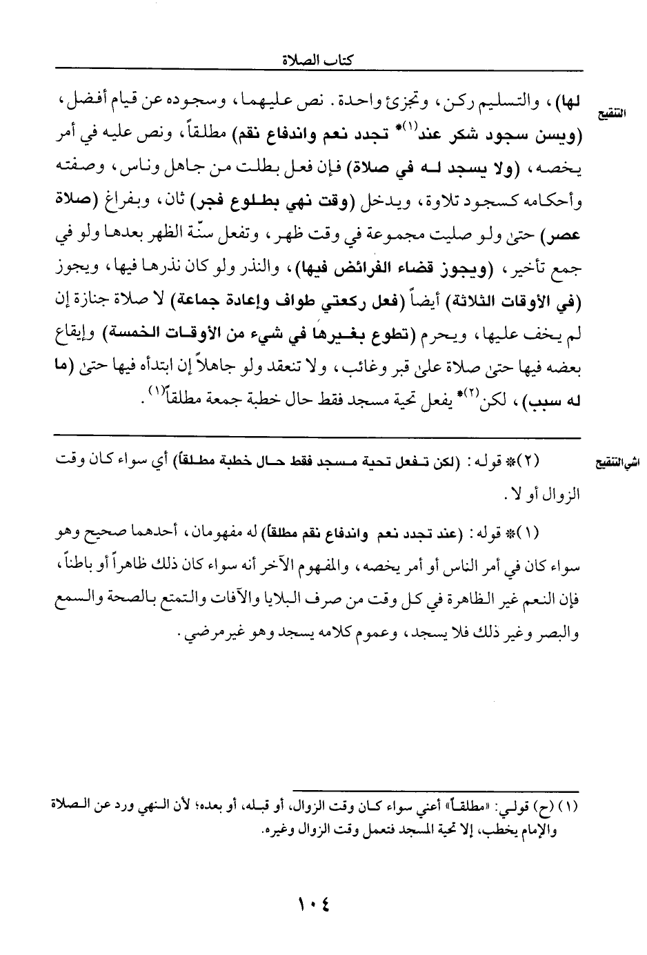 (¬١) (ح) قولي: "مطلقا" أعني سواء كان وقت الزوال، أو قبله، أو بعده؛ لأن النهي ورد عن الصلاة والإمام يخطب، إلا تحية المسجد فتعمل وقت الزوال وغيره.