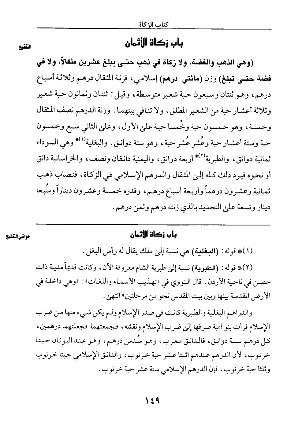 والدراهم البغلية والطبرية كانت في صدر الإسلام ولم يكن شيء منها من ضرب الإسلام فرأت بنو أمية صرفها إلى ضرب الإسلام ونقشه، فجمعتهما فجعلتهما درهمين، كل درهم ستة دوانق، فالدانق معرب، وهو سُدس درهم، وهو عند اليونان حبتا خرنوب، لأن الدرهم عندهم اثنتا عشر حبة خرنوب، والدانق الإسلامي حبتا خرنوب وثلثا حبة خرنوب، فإن الدرهم الإسلامي ستة عشر حبة خرنوب.