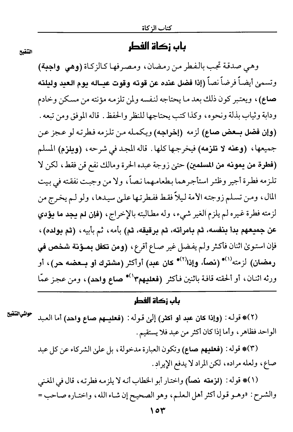 وهي صدقة تجب بالفطر من رمضان، ومصرفها كالزكاة (وهي واجبة) وتسمى أيضا فرضا نصا (إذا فضل عنده عن قوته وقت عياله يوم العيد وليلته صاع)، ويعتبر كون ذلك بعد ما يحتاجه لنفسه ولمن تلزمه مؤنته من مسكن وخادم وددابة وثياب بذلة ونحوه، وكذا كتبب يحتاجها للنظر والحفظ. قال الموفق ومن تبعه.