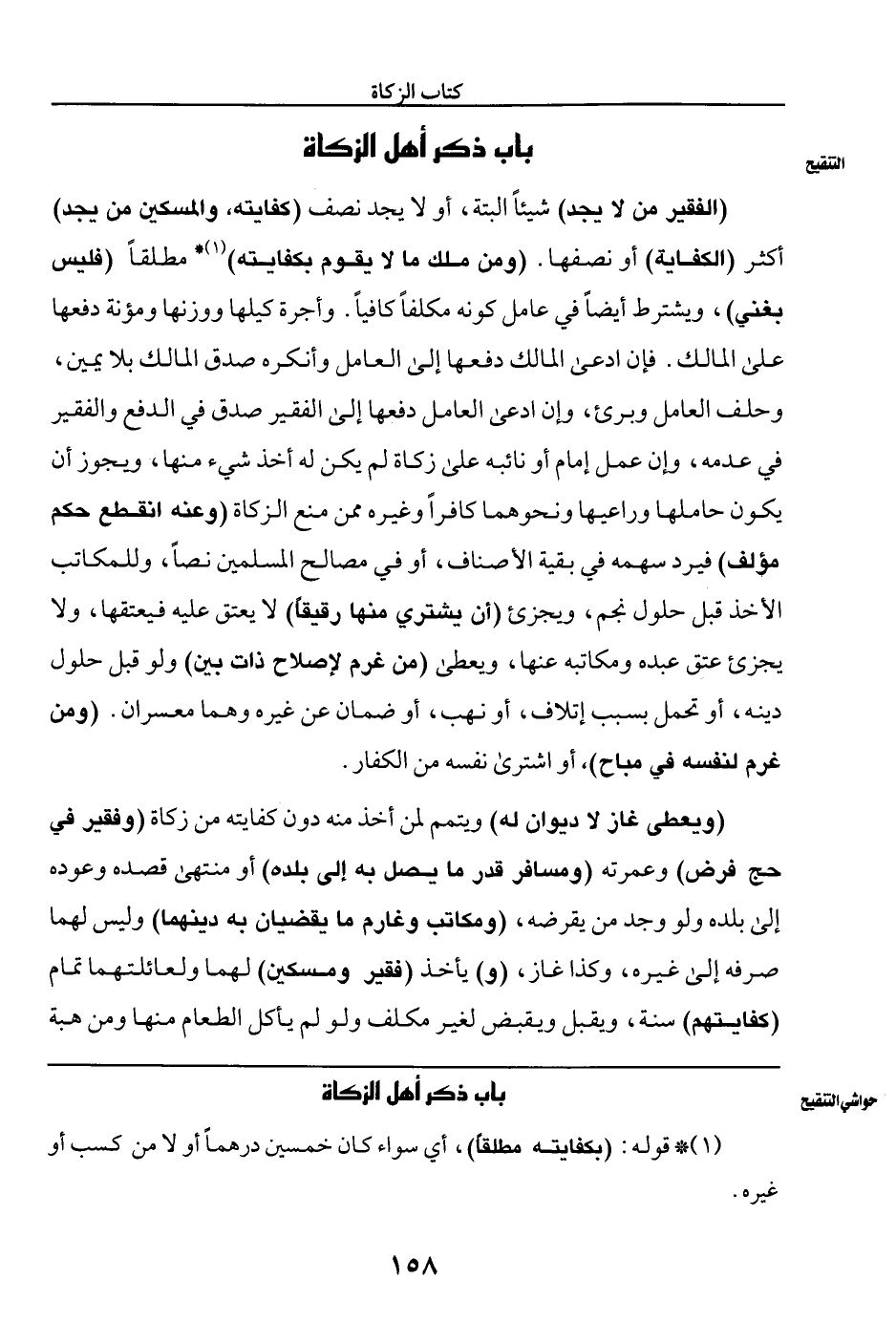 (الفقر من لا يجد) شيئا البتة، أو لا يجد نصف (كفايته، والمسكين من يجد) أكثر (الكفاية) أو نصفها. (ومن ملك ما لا يقوم بكفايته) (¬١) * مطلقا (فليس بغني)، ويشترط أيضا في عامل كونه مكلفا كافيا. وأجرة كيلها ووزنها ومؤنة دفعها على المالك. فإن ادعى المالك دفعها إلى العامل وأنكره صدق المالك بلا يمين، وحلف العامل وبرئ، وإن ادعى العامل دفعها إلى الفقير صدق في الدفع والفقير في عدمه، وإن عمل إمام أو نائبه على زكاة لم يكن له أخذ شيء منها، ويجوز أن يكون حاملها وراعيها ونحوهما كافرا وغيره ممن منع الزكاة (وعنه انقطع حكم مؤلف) فيرد سهمه في بقية الأصناف، أو في مصالح المسلمين نصا، وللمكاتب الأخذ قبل حلول نجم، ويجزئ (أن يشتري منها رقيقا) لا يعتق عليه فيعتقها، ولا يجزئ عتق عبده ومكاتبته عنها، ويعطى (من غرم لإصلاح ذات البين) ولو قبل حلول دينه، أو تحمل بسبب إتلاف، أو نهب أو ضمان عن غيره وهما معسران. (ومن غرم لنفسه في مباح)، أو اشترى نفسه من الكفار.