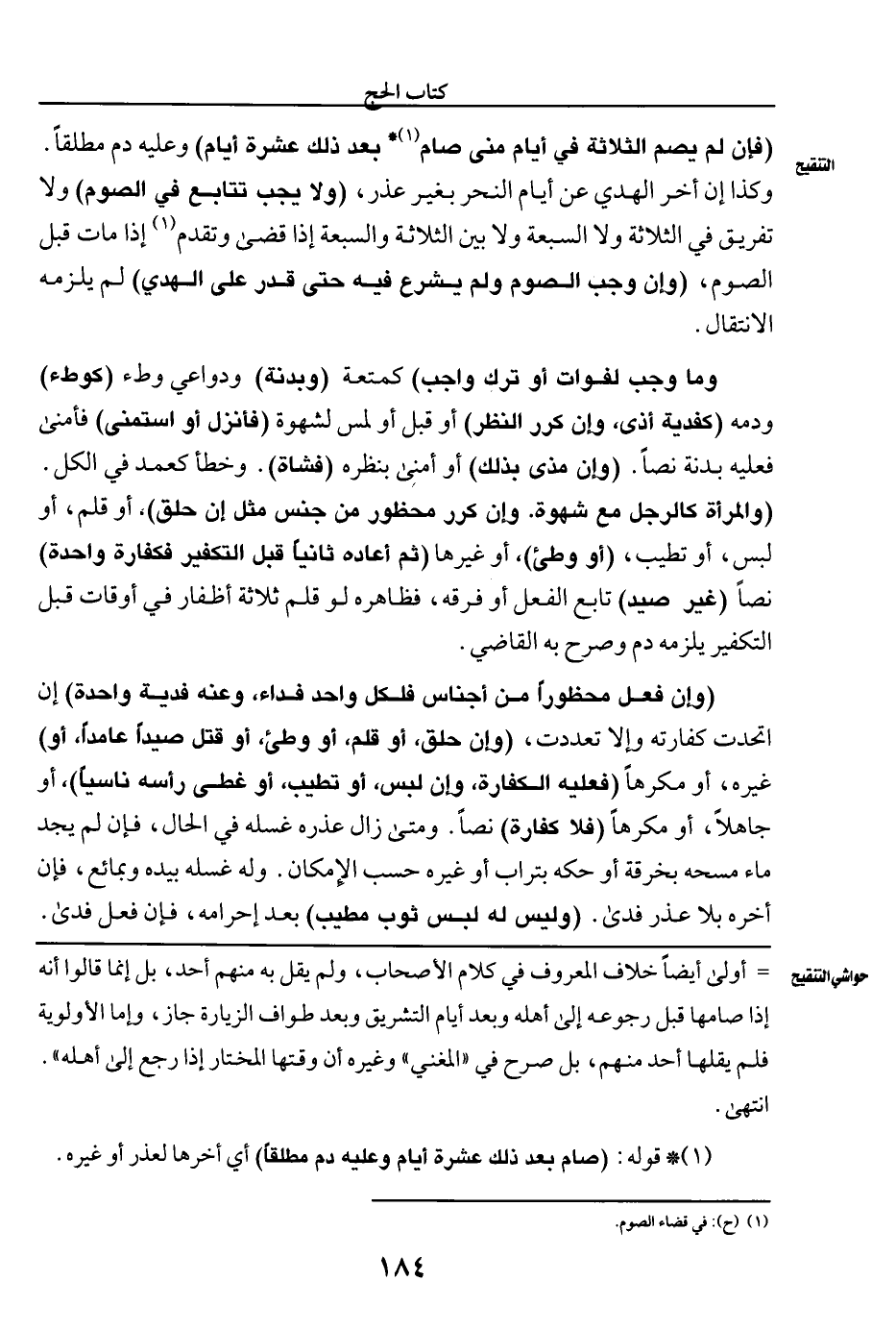 (وإن فعل محظورا من أجناس فلكل واحد فداء، وعنه فدية واحدة) إن اتحدت كفارته وإلا تعددت، (وإن حلق، أو قلم، أو وطئ، أو قتل صيدا عامدا، أو) غيره، أو مكرها (فعليه الكفارة، وإن لبس أو تطيب، أو غطى رأسه ناسيا)، أو جاهلا، أو مكرها (فلا كفارة) نصا. ومتى زال عذره غسله في الحال، فإن لم يجد ماء فمسحه بخرقة أو حكه بتراب أو غيره حسب الإمكان. وله غسله بيده وبمائع، فإن أخره بلا عذر فدى. (وليس له لبس ثوب مطيب) بعد إحرامه، فإن فعل فدى.