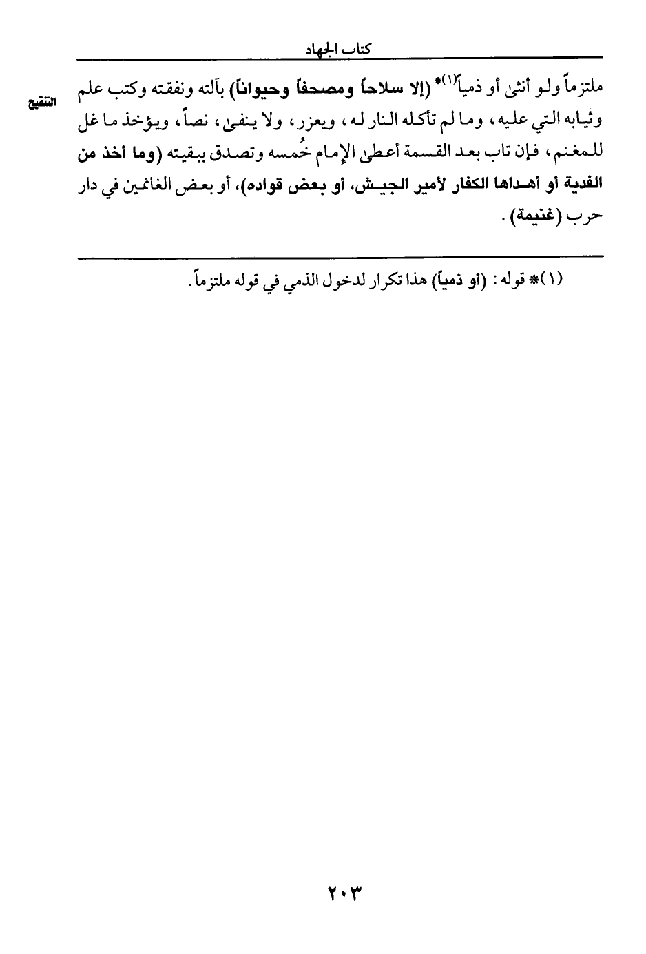 ملتزما ولو أنثى أو ذميا (¬١) * (إلا سلاحا ومصحفا وحيوانا) بآلته ونفقته وكتب علم وثيابه التي عليه، وما لم تأكله النار له، ويعزر، ولا ينفى، نصا، ويؤخذ ما غل للمغنم، فإن تاب بعد القسمة أعطى الإمام خُمسه وتصدق ببقيته (وما أخذ من الفدية أو أهداها الكفار لأمير الجيش، أو بعض قواده)، أو بعض الغانمين في دار حرب (غنيمة).