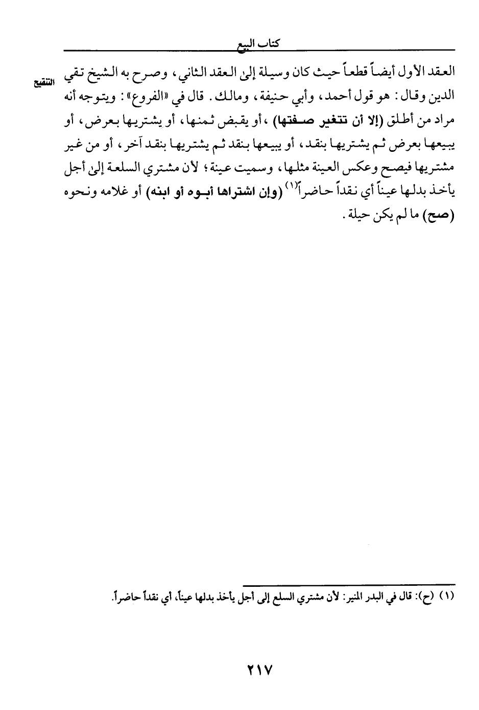 (¬١) (ح): قال في البدر المنير: لأن مشتري السلع إلى أجل يأخذ بدلها عينا، أي نقدا حاضرا.
