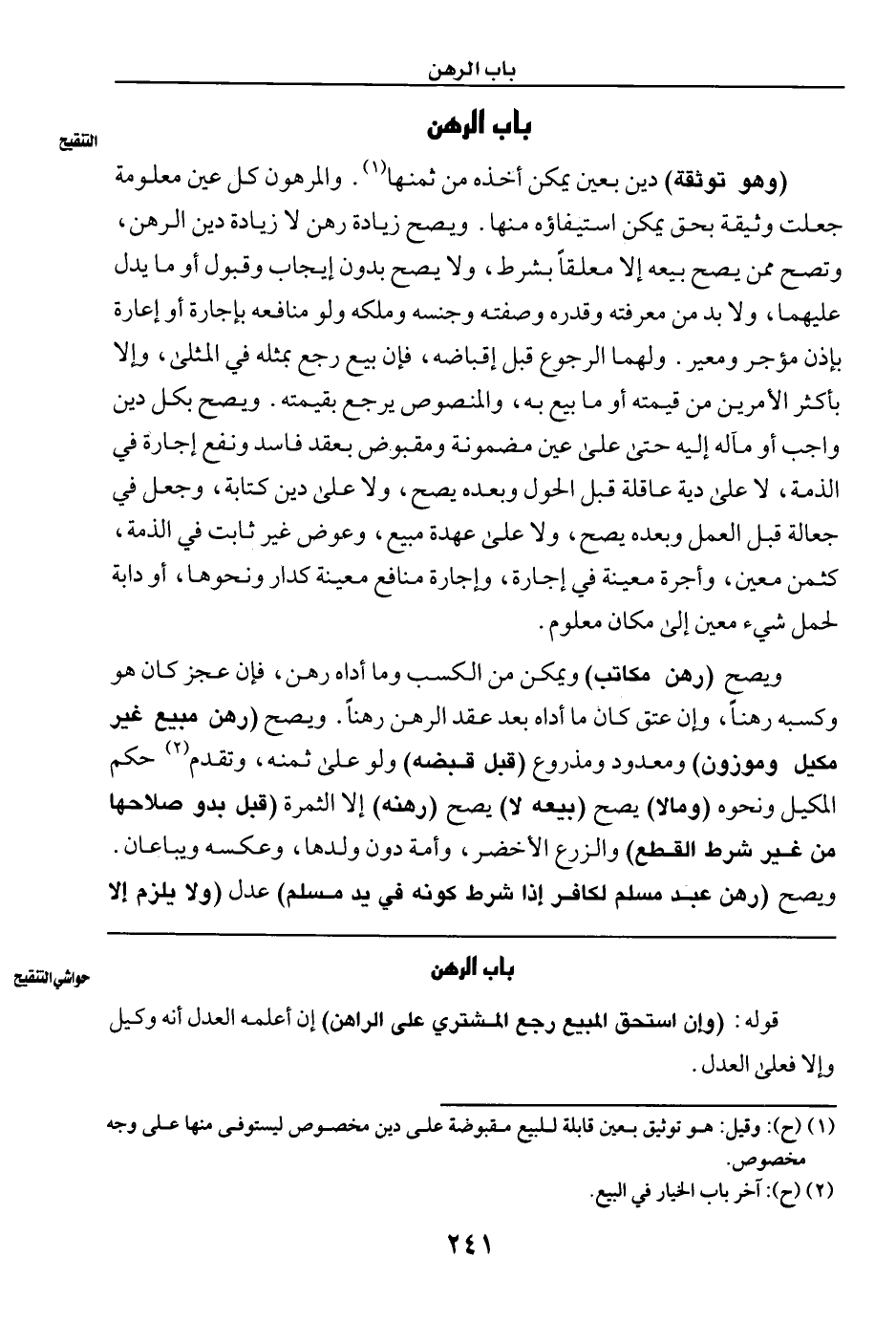 (¬١) (ح): وقيل: هو توثيق بعين قابلة للبيع مقبوضة على دين مخصوص ليستوفى منها على وجه مخصوص.