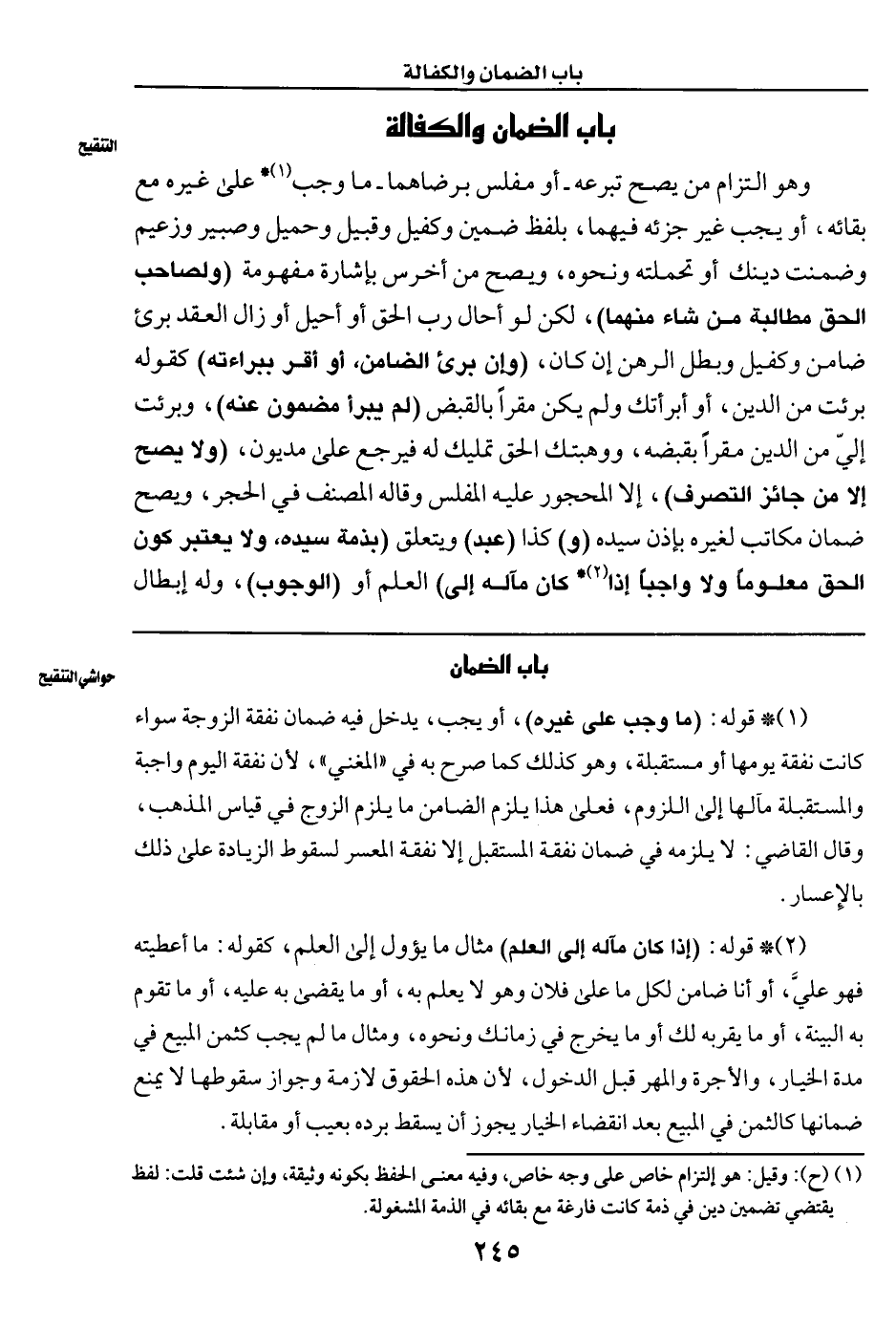 (¬١) (ح): وقيل: هو التزام خاص على وجه خاص، وفيه معنى الحفظ بكونه وثيقة، وإن شئت قلت: لفظ يقتضي تضمين دين في ذمة كانت فارغة مع بقائه في الذمة المشغولة.