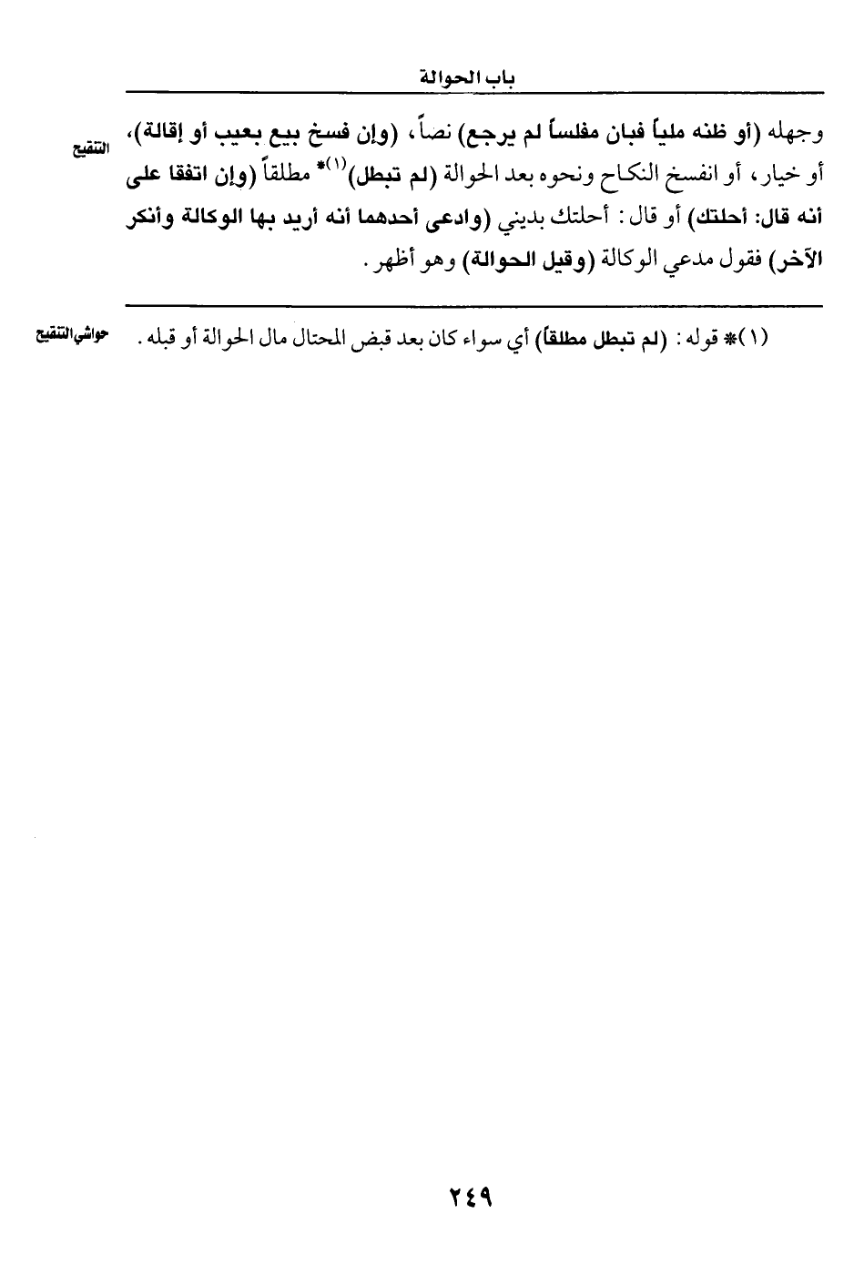 وجهله (أو ظنه مليًا فبان مفلسًا لم يرجع) نصًا، (وإن فسخ بيع بعيب أو إقالة)، أو خيار، أو انفسخ النكاح ونحوه بعد الحوالة (لم تبطل) (¬١) * مطلقًا (وإن اتفقا على أنه قال: أحلتك) أو قال: أحلتك بديني (وادعى أحدهما أنه أريد بها الوكالة وأنكر الآخر) فقول مدعي الوكالة (وقيل الحوالة) وهو أظهر.