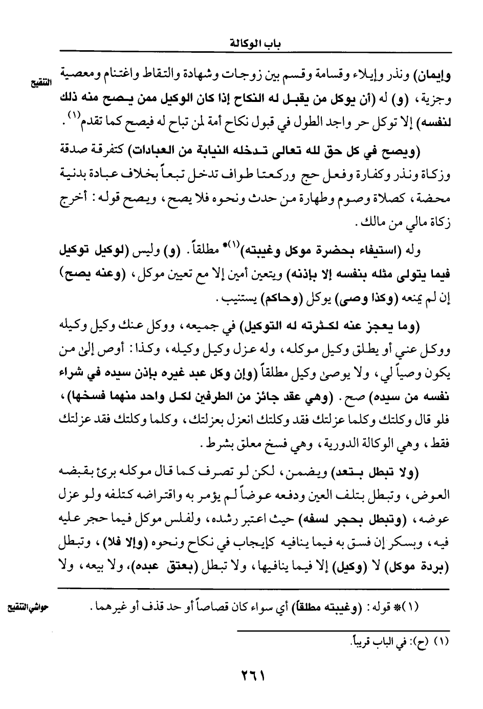 (ولا تبطل بتعد) ويضمن، لكن لو تصرف كما قال موكله برئ بقبضه العوض، وتبطل بتلف العين ودفعه عوضًا لم يؤمر به واقتراضه كتلفه ولو عزل عوضه، (وتبطل بحجر لسفه) حيث اعتبر رشده، ولفلس موكل فيما حجر عليه فيه، وبسكر إن فسق به فيما ينافيه كإيجاب في نكاح ونحوه (وإلا فلا)، وتبطل (بردة موكل) لا (وكيل) إلا فيما ينافيها، ولا تبطل (بعتق عبده)، ولا بيعه، ولا