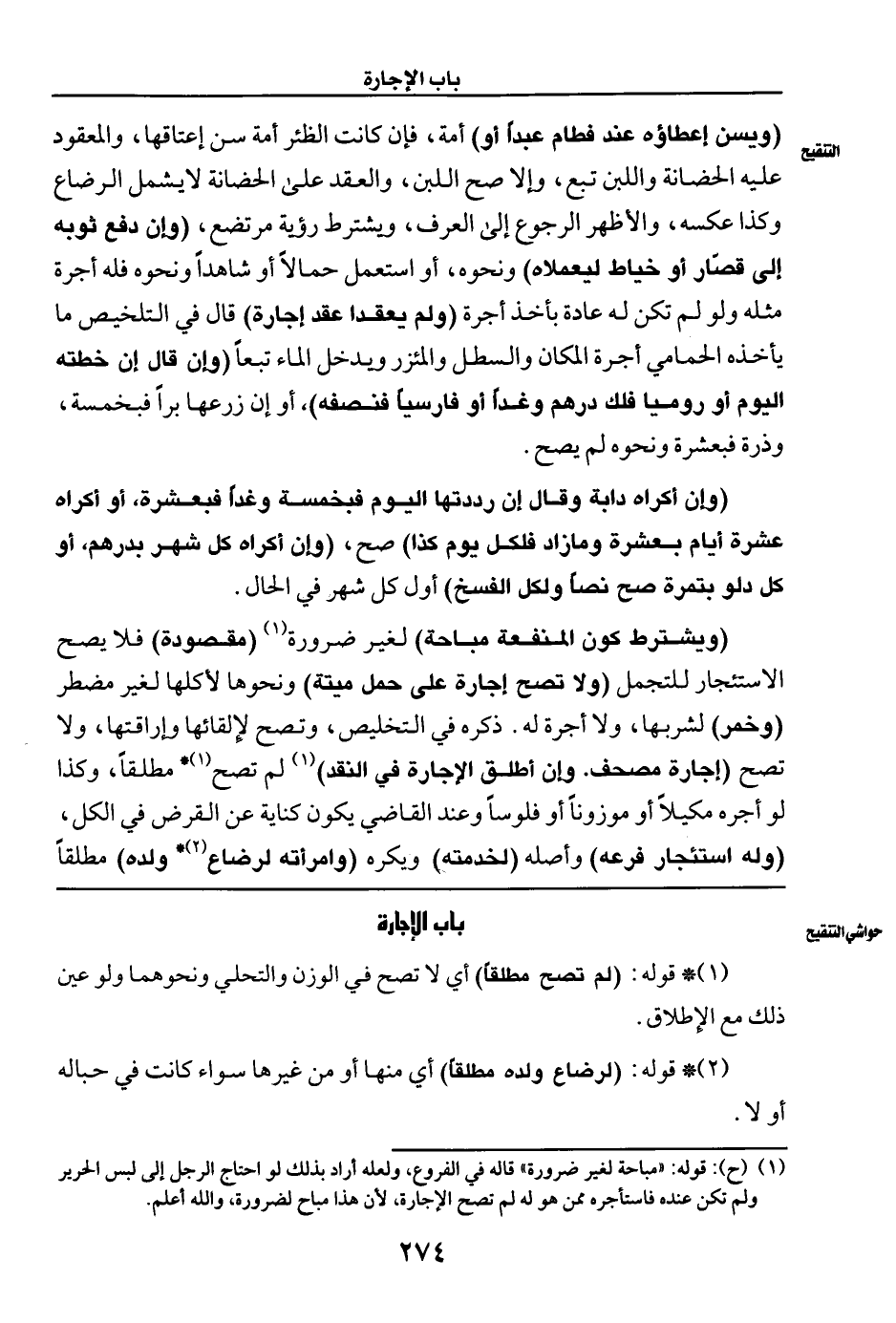 (ويسن إعطاؤه عند فطام عبدًا أو) أمة، فإن كانت الظئر أمة سن إعتاقها، والمعقود عليه الحضانة واللبن تبع، وإلا صح اللبن، والعقد على الحضانة لا يشمل الرضاع وكذا عكسه، والأظهر الرجوع إلى العرف، ويشترط رؤية مرتضع، (وإن دفع ثوبه إلى قصّار أو خياط ليعملاه) ونحوه، أو استعمل حمالًا أو شاهدًا ونحوه فله أجرة مثله ولو لم تكن له عادة بأخذ أجرة (ولم يعقدا عقد إجارة) قال في التلخيص ما يأخذه الحمامي أجرة المكان والسطل والمئزر ويدخل الماء تبعًا (وإن قال إن خطته اليوم أو روميا فلد درهم وغدًا أو فارسيًا فنصفه)، أو إن زرعها برًا فبخمسة، وذرة فبعشرة ونحوه لم يصح.