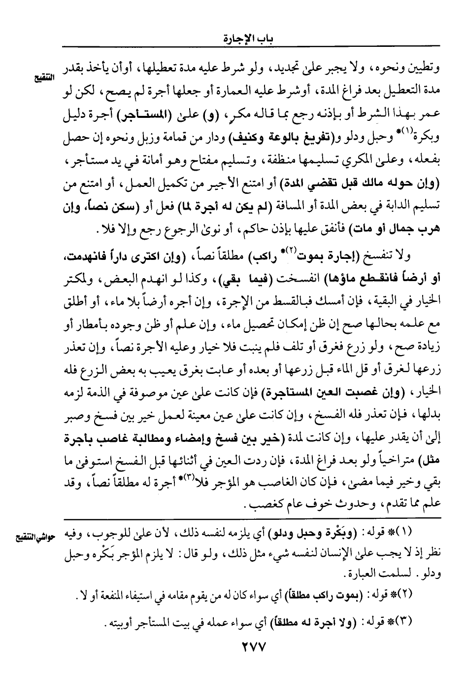 (¬١)* قوله: (وبَكْرة وحبل ودلو) أي يلزمه لنفسه ذلك؛ لأن على للوجوب، وفيه نظر إذ لا يجب على الإِنسان لنفسه شيء مثل ذلك، ولو قال: لا يلزم المؤجر بَكْره وحبل ودلو. لسلمت العبارة.