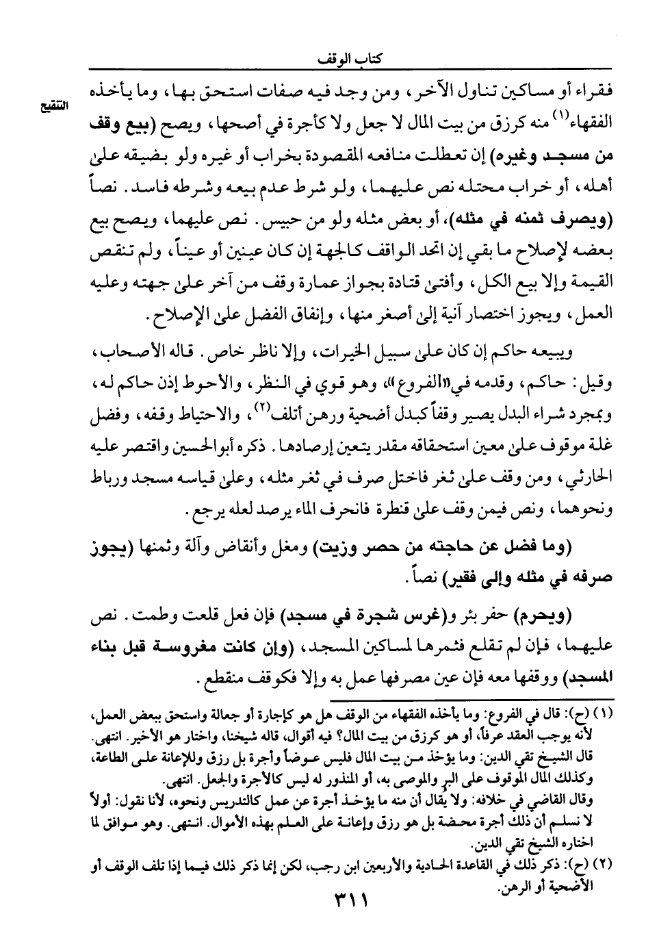 (¬١) (ح): قال في الفروع: وما يأخذه الفقهاء من الوقف هل هو كإجارة أو جعالة واستحق ببعض العمل، لأنه يوجب العقد عرفًا، أو هو كرزق من بيت المال؟ فيه أقوال، قاله شيخنا، واختار هو الأخير. انتهى. قال الشيخ تقي الدين: وما يؤخذ من بيت المال فليس عوضًا وأجرة بل رزق وللإعانة على الطاعة، وكذلك المال الموقوف على البر والموصى به، أو المنذور له ليس كالأجرة والجعل. انتهى.